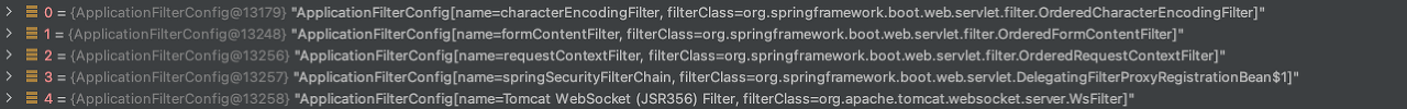 다음과 같은 필터들이 있는 것을 확인할 수 있다. 이중 스프링 시큐리티에서 사용하는 DelegatingFilterProxy에 집중해야 한다.